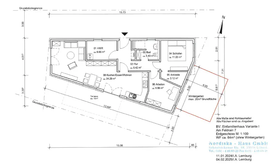 Die Details wie z. B.: Dachflächenfenster, Farbgestaltung, Bossen, Erker, Bepflanzung und Möblierungen dienen nur zum besseren Verständnis und sind nicht im Leistungsumfang enthalten. Alle Maße sind Rohbaumaße, alle Angaben sind ca.-Angaben!