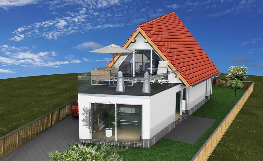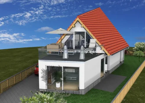 Unsere 1,5 Geschosser überzeugen durch Ihre Vielseitigkeit in der Grundrissgestaltung und Ihrer Vielfältigkeit im Aussehen. Größen von 115 bis 215m².